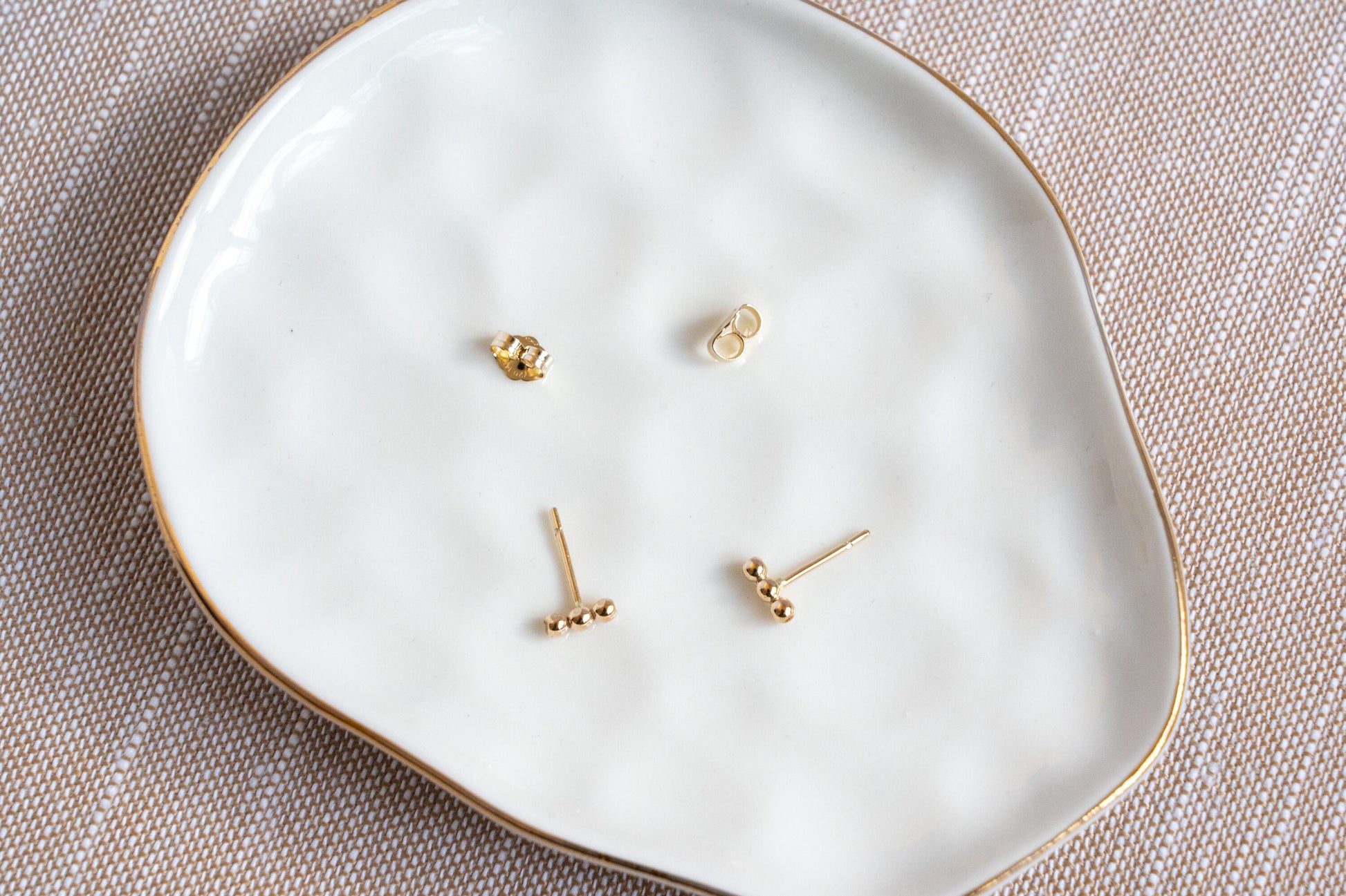 Minimalist trio bead dainty studs. Simply an elegant pair of earrings for everyday wear.