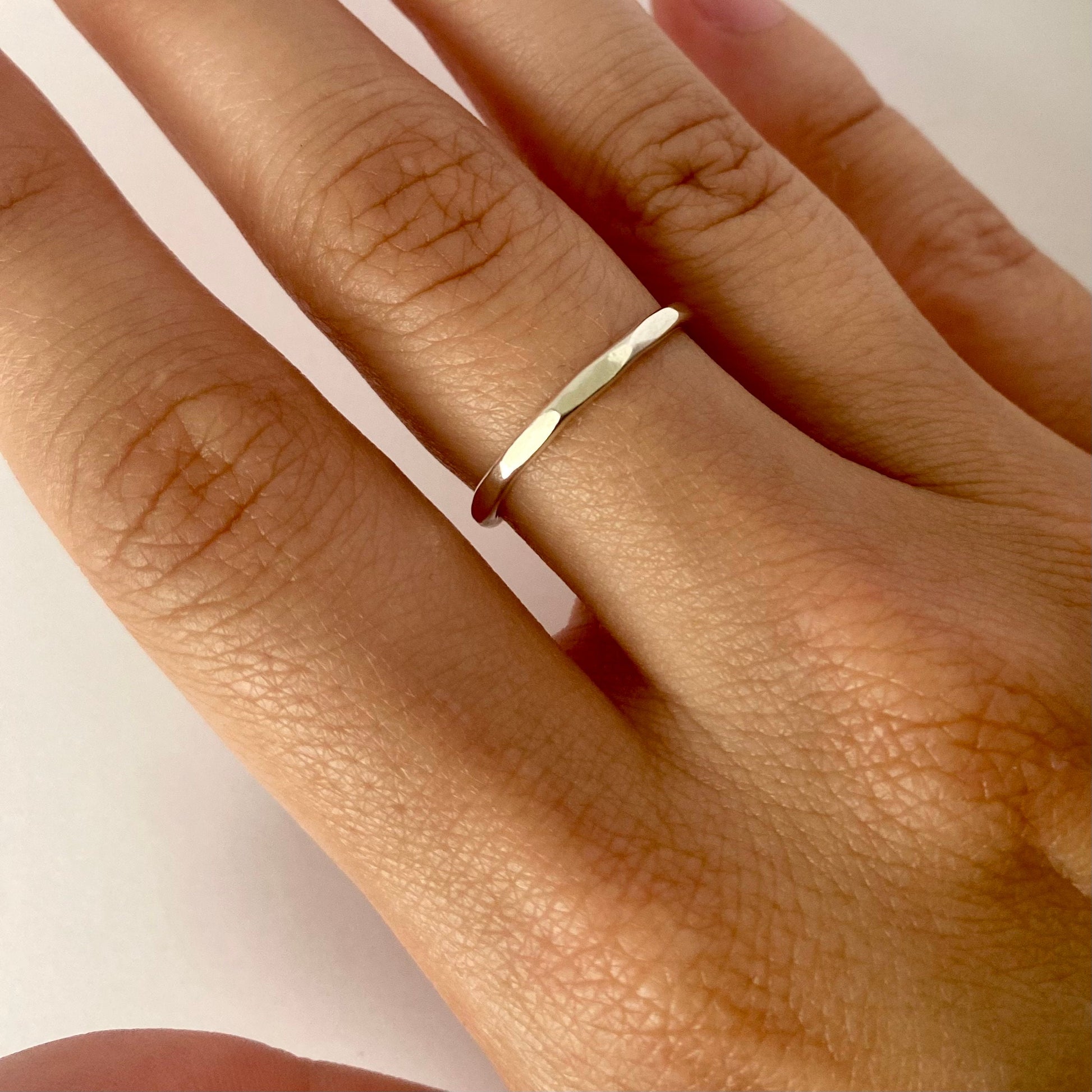 Stacking minimal hammered band is to great stackable ring to pair with other accent stacking or statement rings. The metal is solid .925 sterling silver or 14k gold fill.