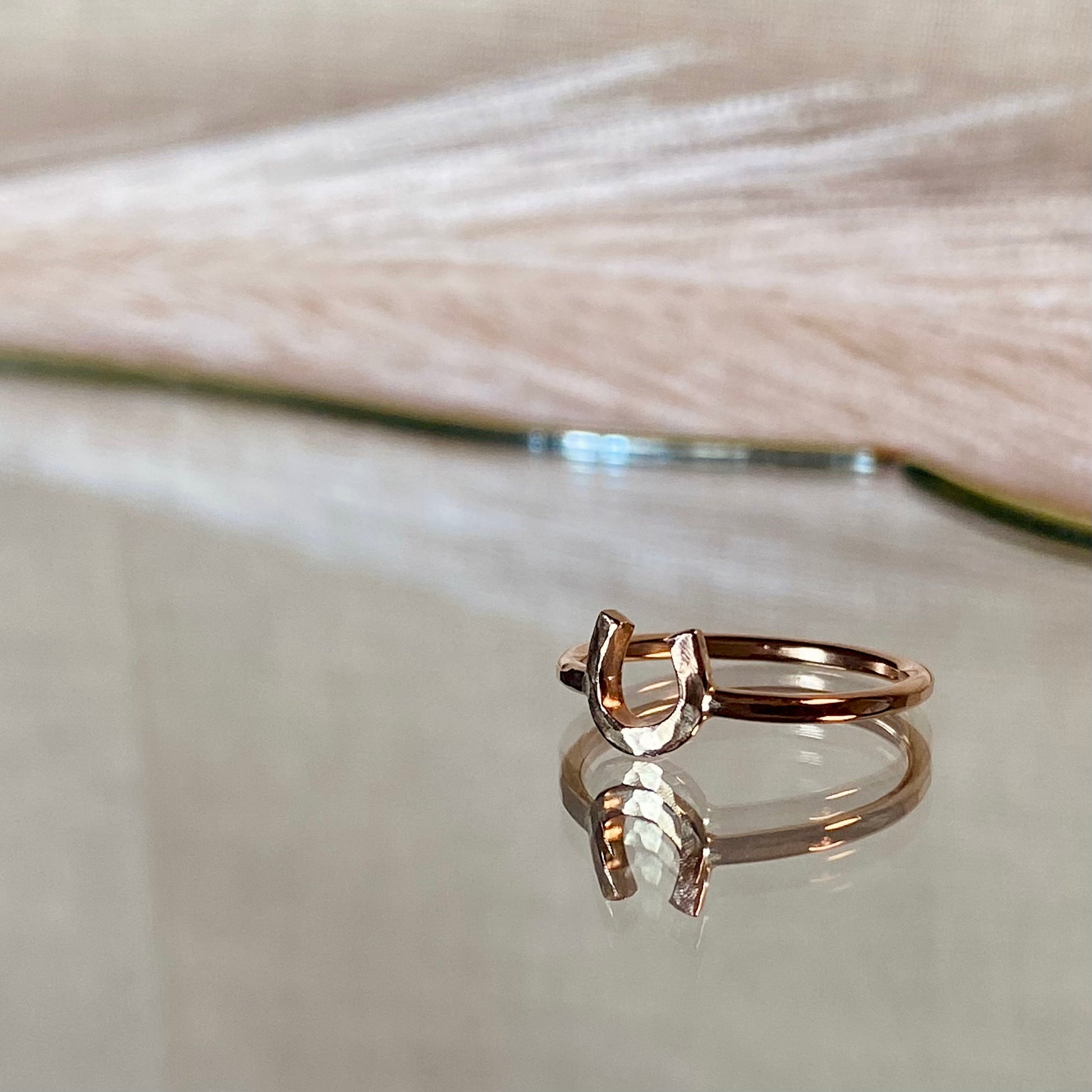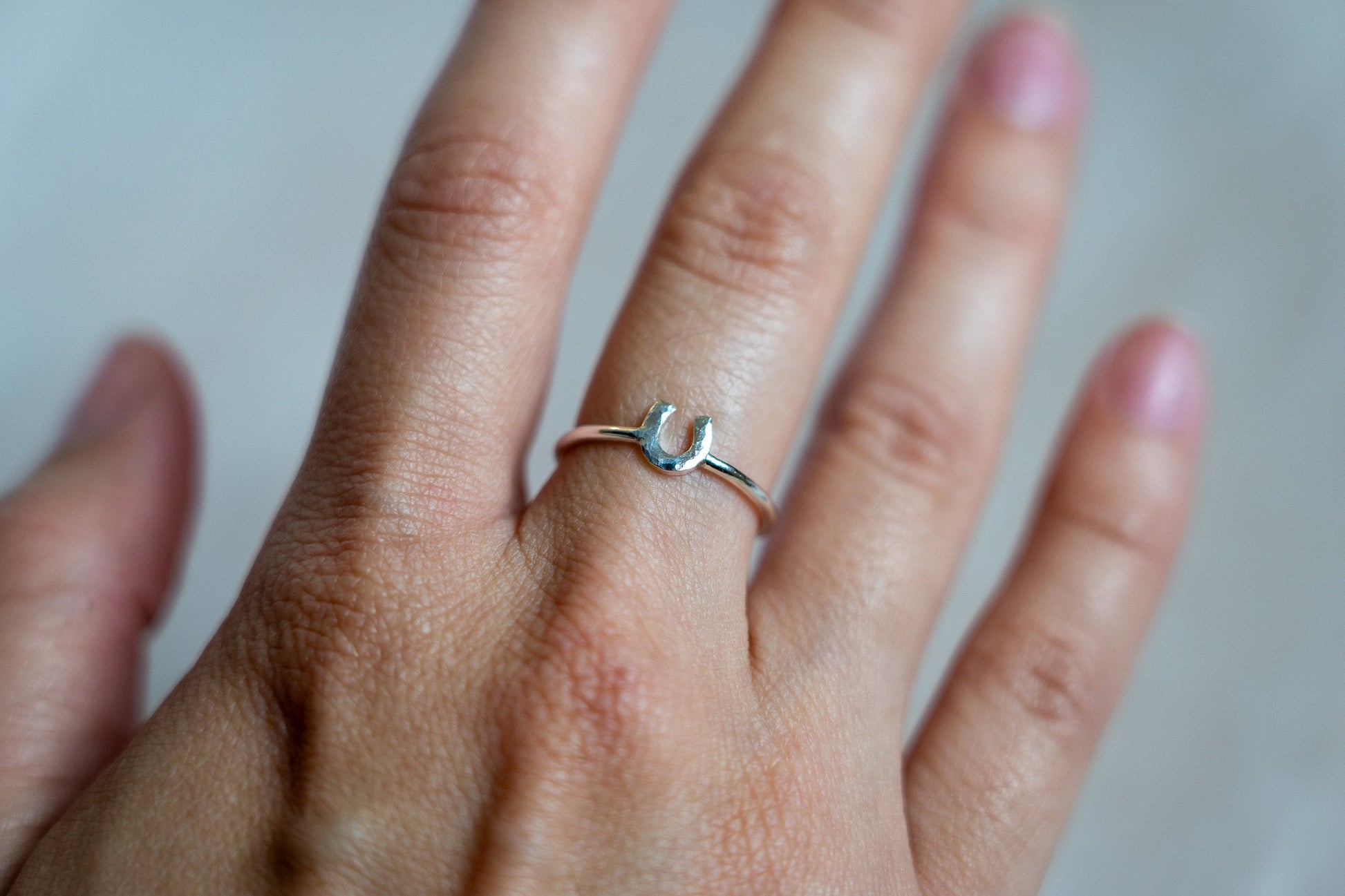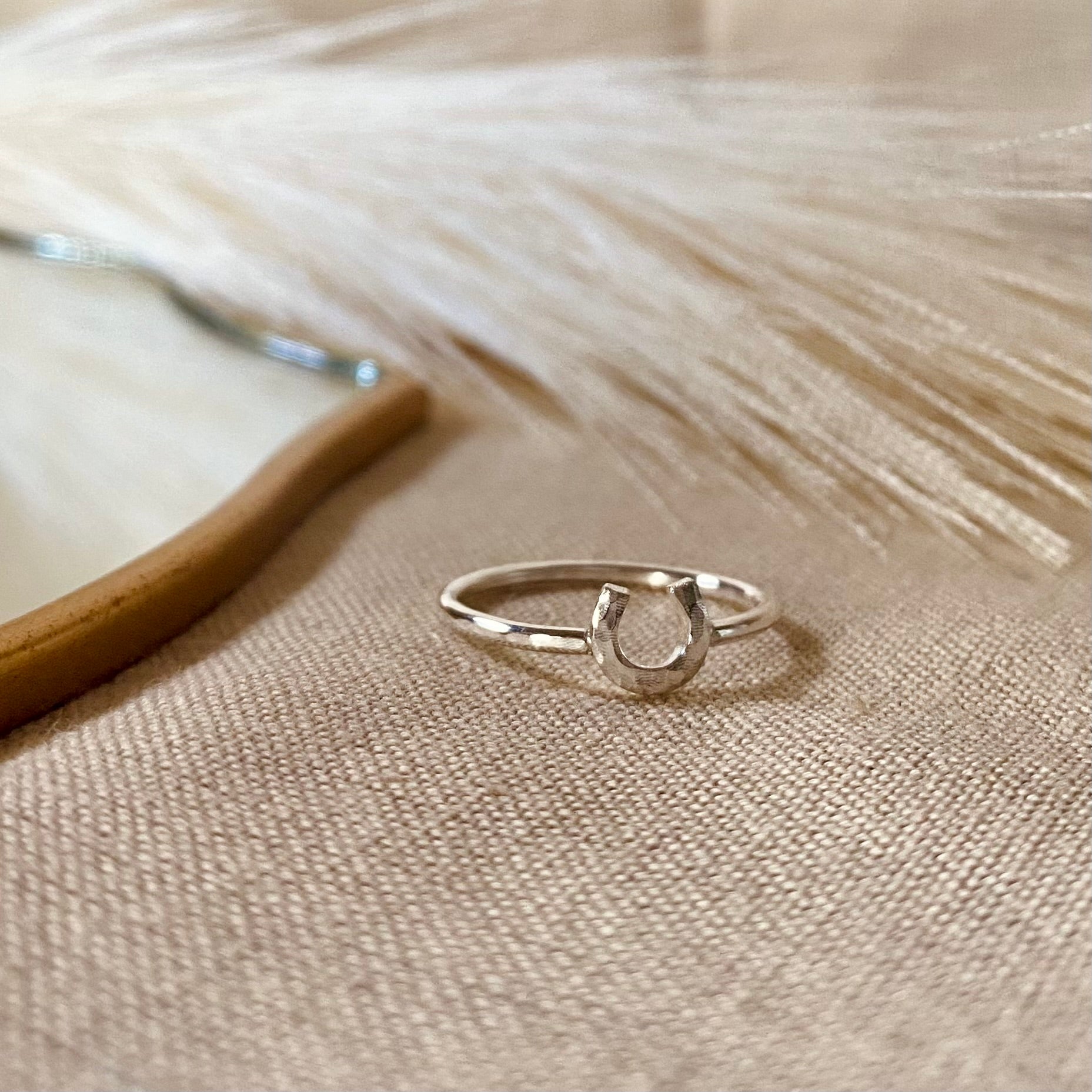 Western style, dainty horseshoe ring. Everyday wear ring to match your country flare. This cute country style ring is made of .925 sterling silver with a hammered style finish.