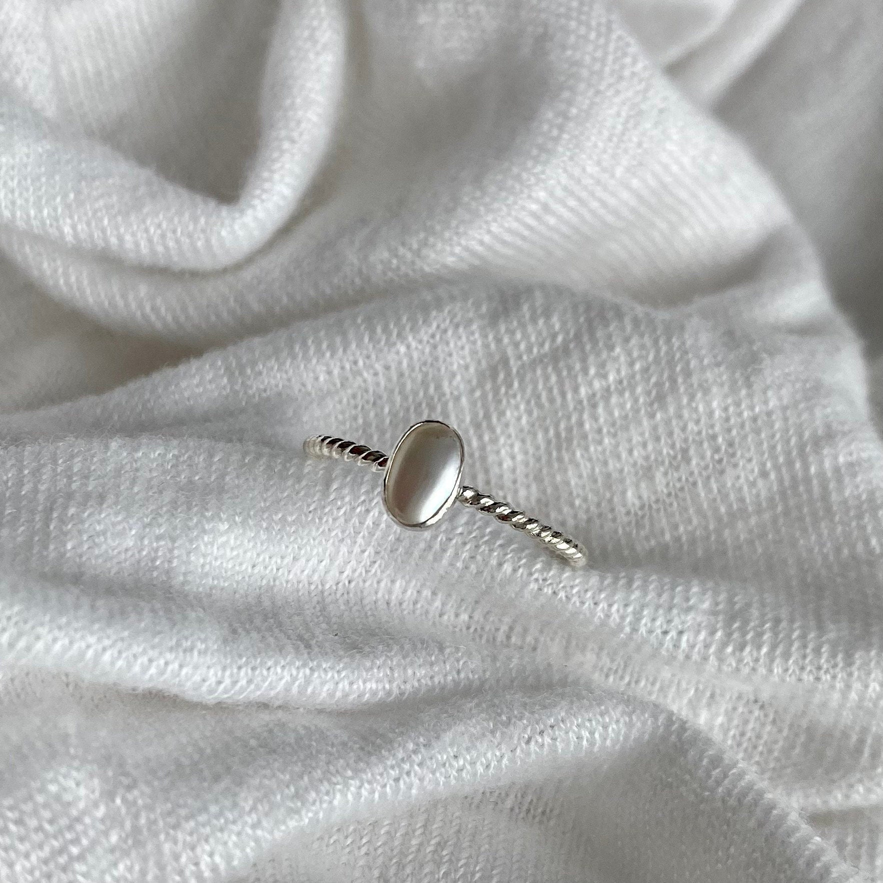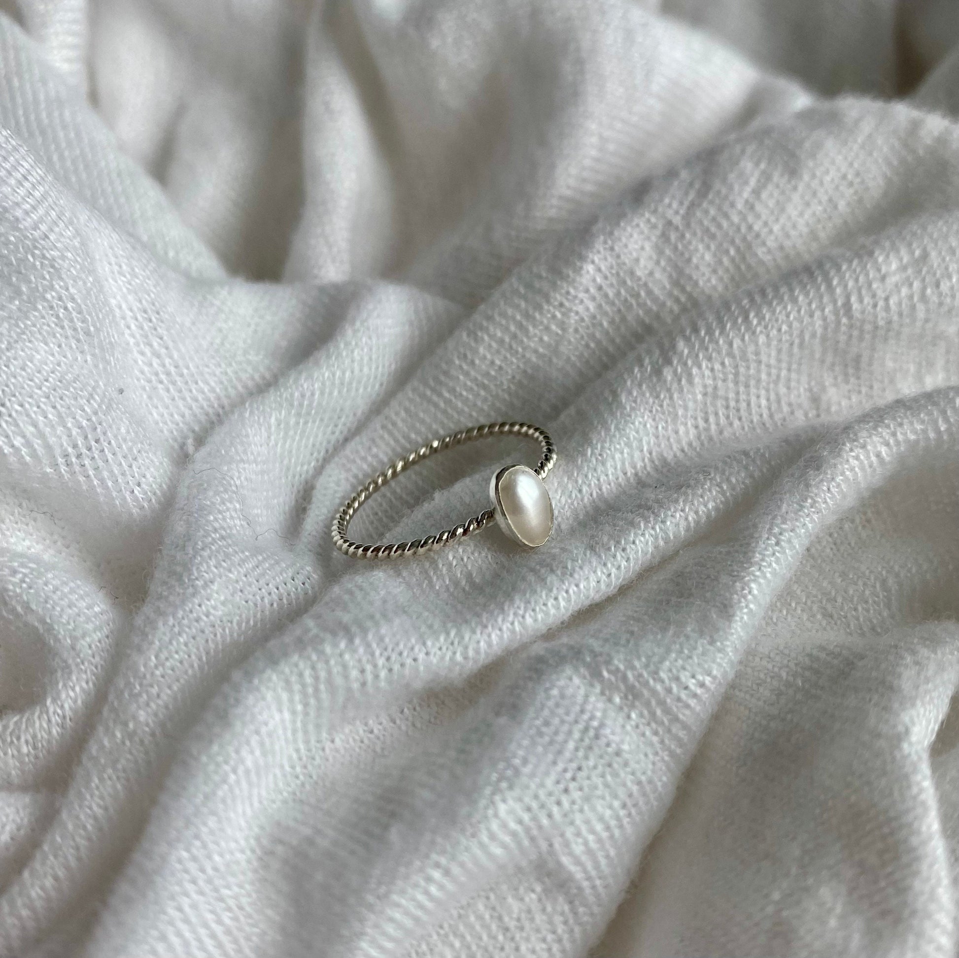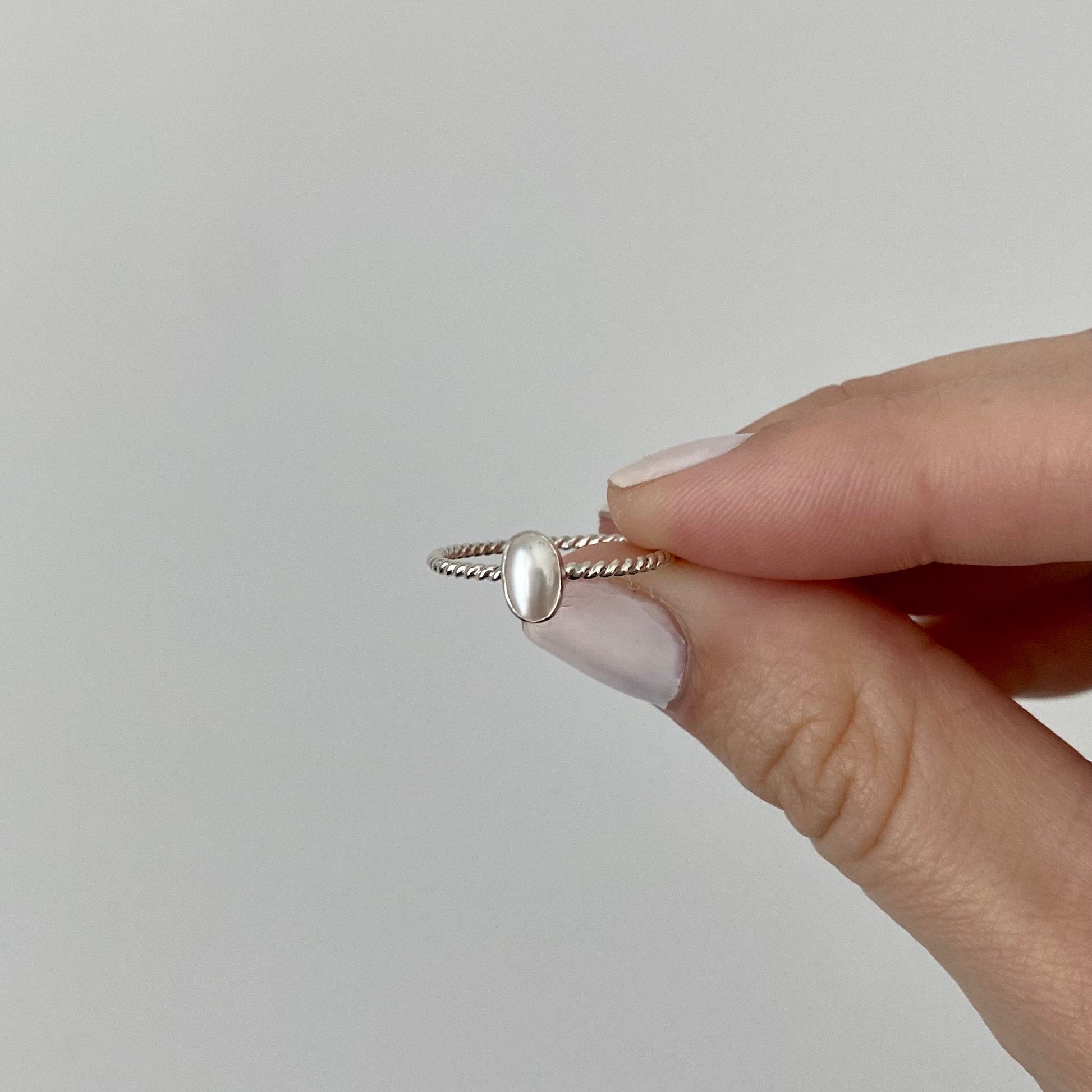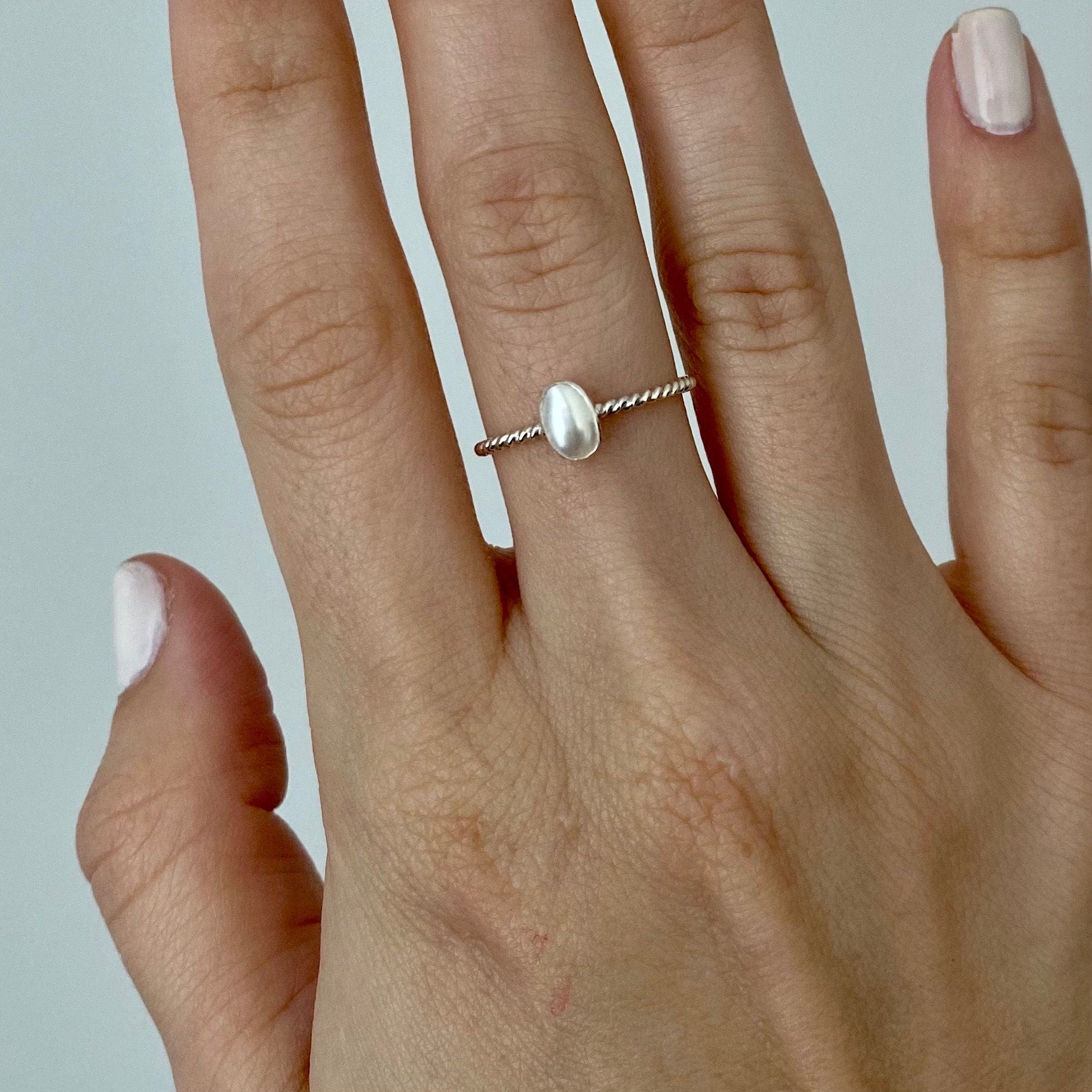 Dainty oval pearl ring is set with a real fresh water pearl. The minimal pearl ring can be used as a stackable ring to compliment other accent rings.