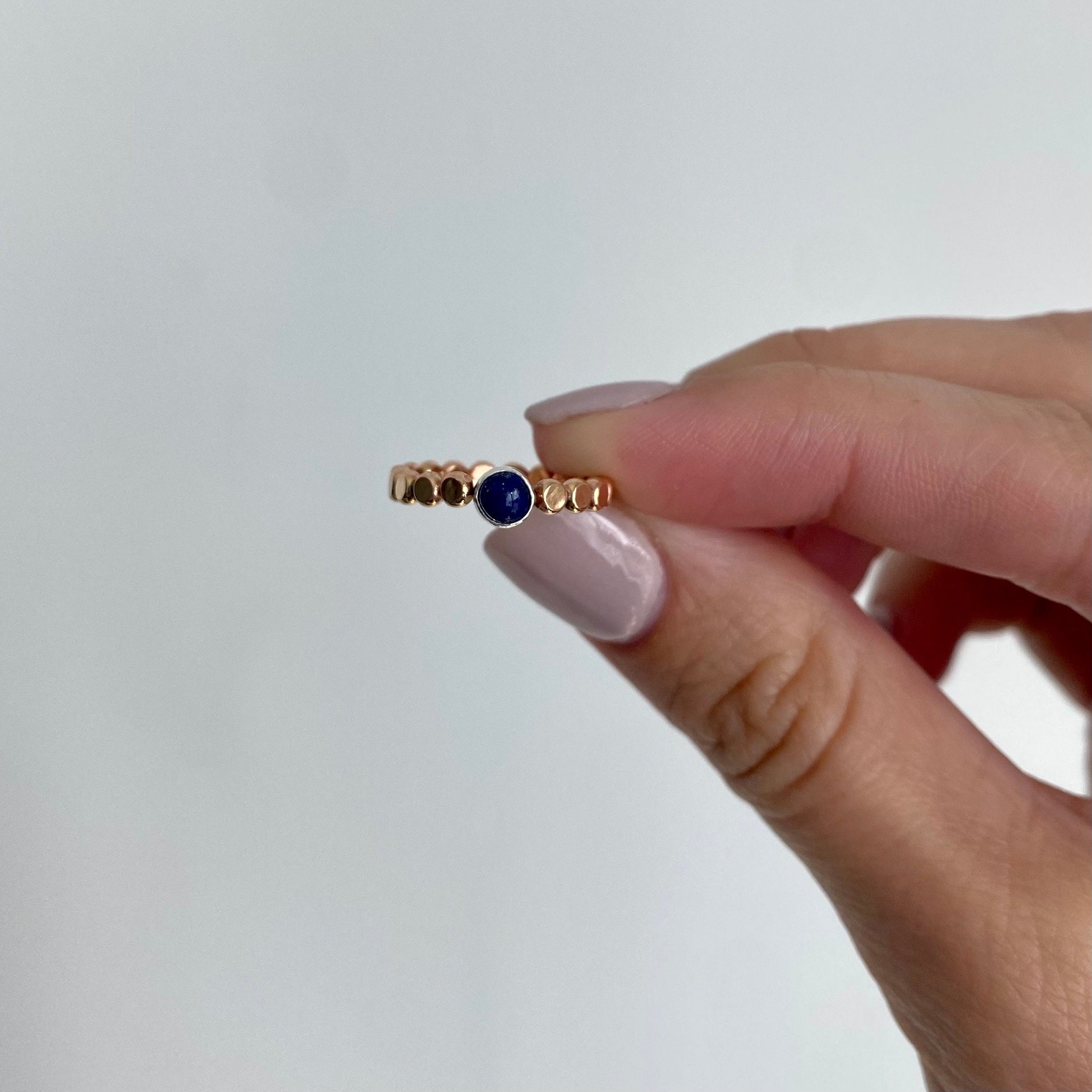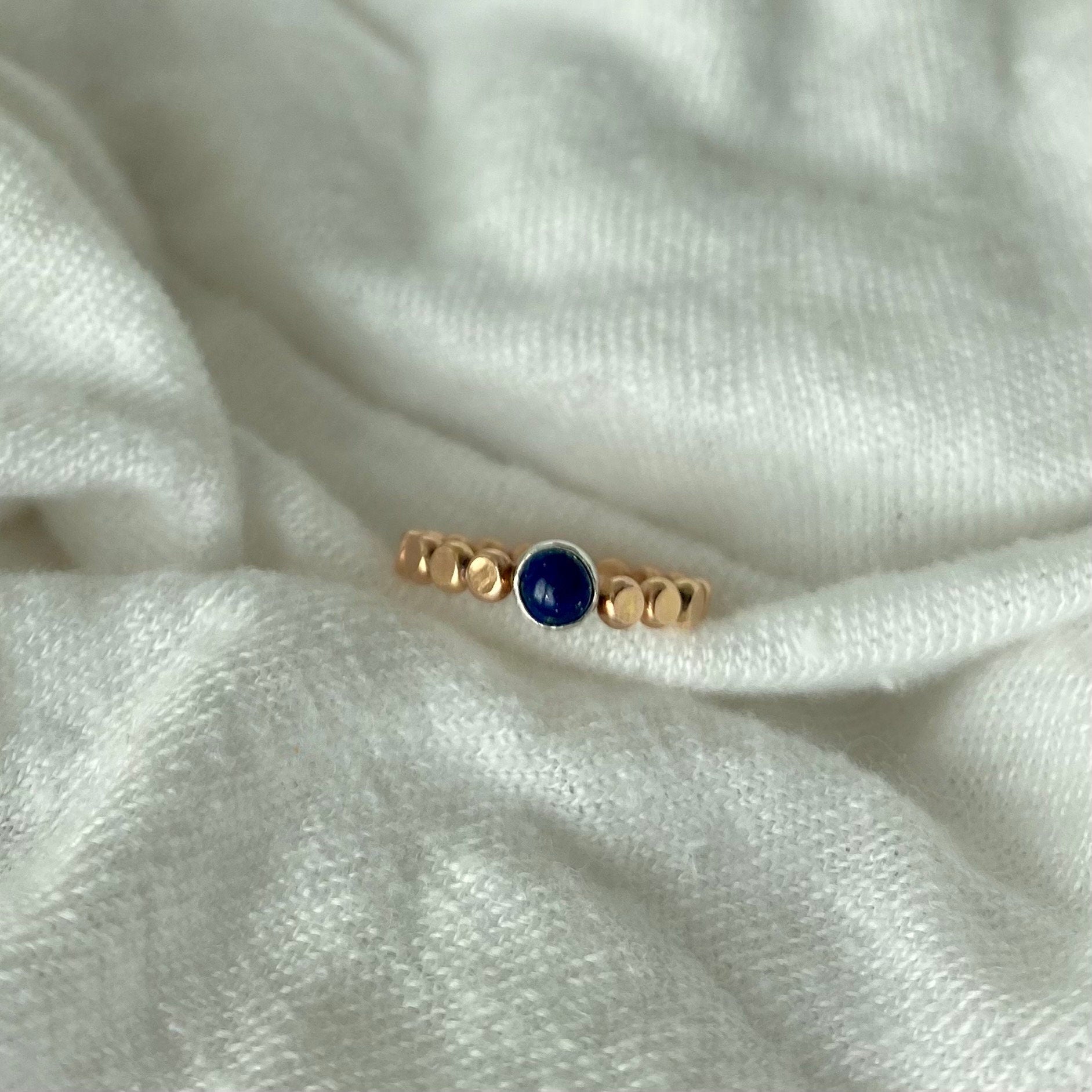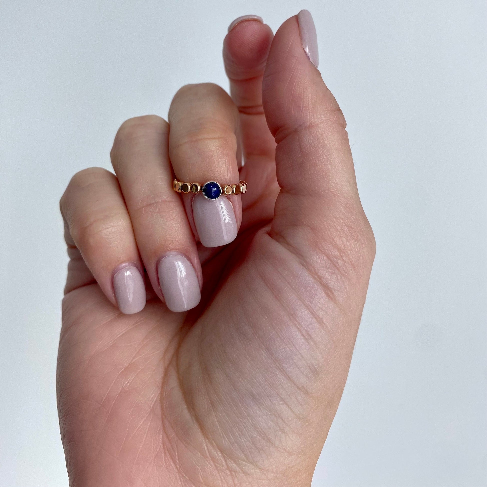 Here's our stunning ring featuring the captivating natural stone, lapis lazuli. The gemstone possesses unique beauty and is carefully crafted into rings