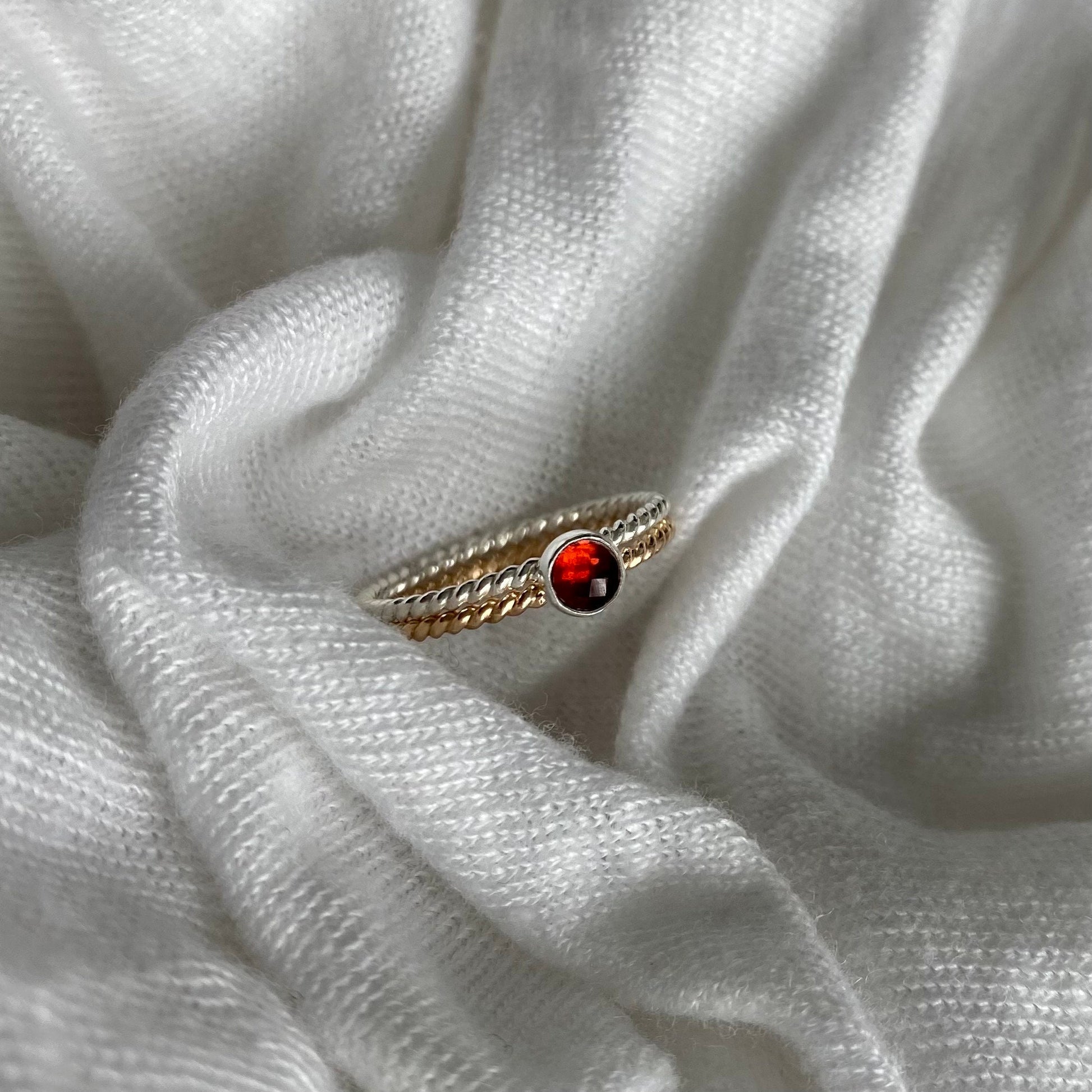 This is our rose-cut red garnet stone set in a lovely dainty gold fill and silver setting. Such a beautiful and unique ring to gift to someone special.💖